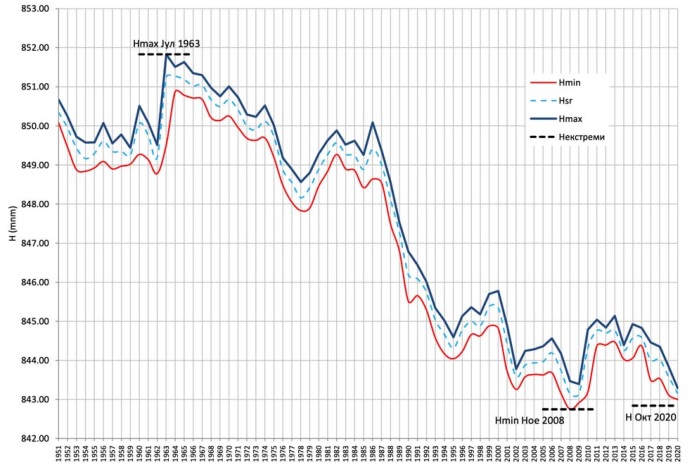 Максималниот водостој на Преспанското Езеро бил на кота од 851,83 метри надморска височина и тој е забележан во 1963 година. По таа година, започнало и намалувањето на водостојот и повлекувањето на езерото. Најниската вредност езерото ја достигна лани во ноември со кота од 840,8 метри надморска височина.